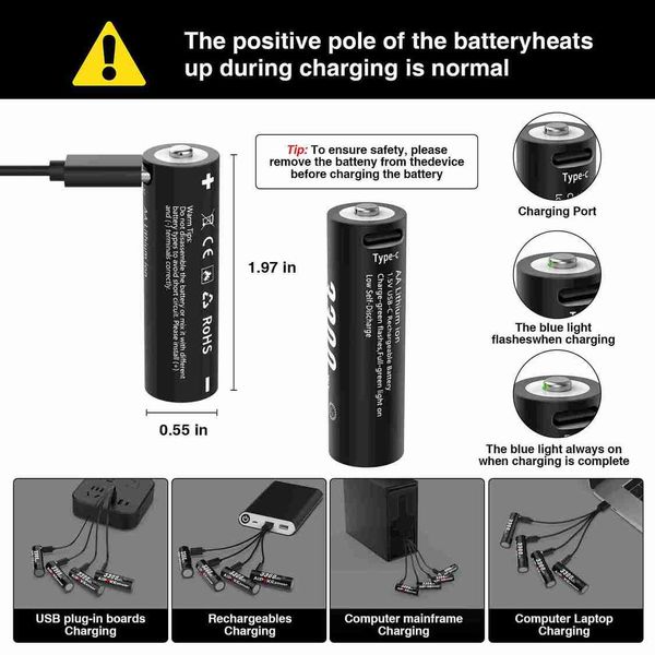 規格:系統:USB AA 1.5V 鋰離子電池類型:AA容量:3300mWh電壓:1.5V最大放電電流:2.5A溫度:-20℃~60℃特徵:[高功率容量]:包括預先充電的 AIPEKE AA 高容量可充電電池,每個電池容量為 3300mWh,適用於功率需求高的設備,包括胰島素幫浦、玩具、遙控器和可攜式音訊播放器。[1.5V 恆壓輸出]:3300mWh 高容量可充電 AA 電池具有持久、連續的恆壓輸出。非常適合一些高功率設備如電動玩具、Xbox控制器、相機、家用電器、麥克風等。[2 小時充滿電]:內建 LED 指示燈。閃爍的綠色表示充電中,恆定的綠色表示正在充電。先進的鋰充電技術可在2小時內將電池充滿電,減少等待時間。比傳統的鎳氫充電電池快得多,後者需要 6 小時才能充滿電。 [便攜式 USB-C 充電埠]:隨附的 1 條 4 合 1 電纜適用於 PC/插頭/行動電源/車用充電器或 2.0A/3.0A 轉接器各種充電介面輸入,可非常方便地一次為 4 個可充電鋰電池充電。[電池壽命長,浪費更少]:AIPEKE 電池最多可充電 1200 次。與一次性電池相比,可充電鋰電池更符合現代電池解決方案,幫助您減少電子垃圾,節省金錢並節省時間。 [安全設計]:AA 可充電鋰電池內建多重安全保護系統,包括過充、過度放電、短路和過熱保護,確保充電和使用過程中的安全。[2 種充電方式]:除了使用 Type-C 連接線直接為這些可充電 AA 鋰電池充電外,您還可以使用支援 AA 鋰電池充電的充電器為它們充電。 [便攜式充電設計]:AIPEKE AA 電池可使用常規 Type-c 連接埠電纜進行充電,無需使用獨特的充電器。 AIPEKE 電池的設計旨在滿足大多數家庭的充電需求。