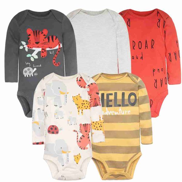 男嬰連身衣5件套新生兒衣服套裝幼兒女嬰服裝100%純棉柔軟嬰兒新款卡通連身衣