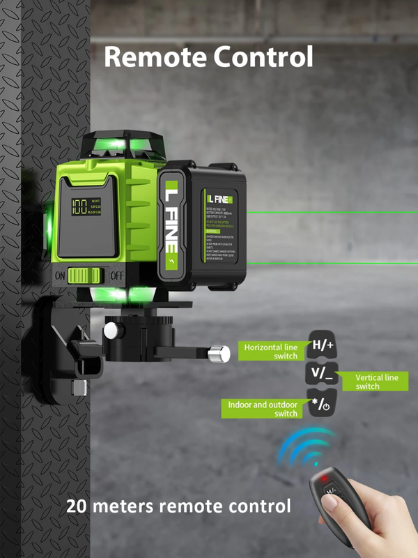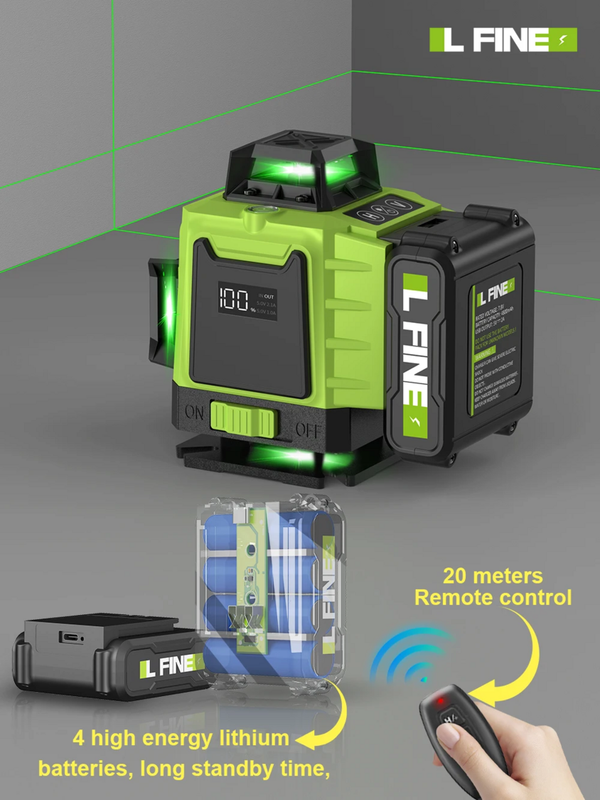 LFINE 3D/4D 雷射水平儀 12/16 線水平和垂直 帶遙控器 8 線 360° 自調平雷射水平儀