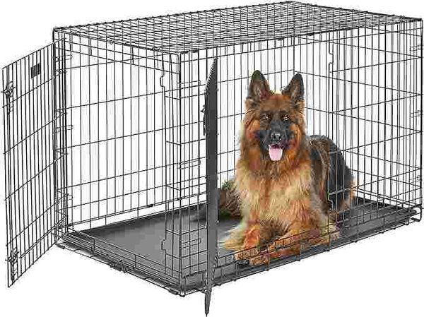 Life Stages 雙門狗籠尺寸為 48L x 30W x 33H 英寸,適合成年體重 90-110 磅的超大型犬種。如果您的狗的體重或尺寸對於這個籠子來說偏高,我們建議您購買大一號的籠子。如有疑問,越大越好