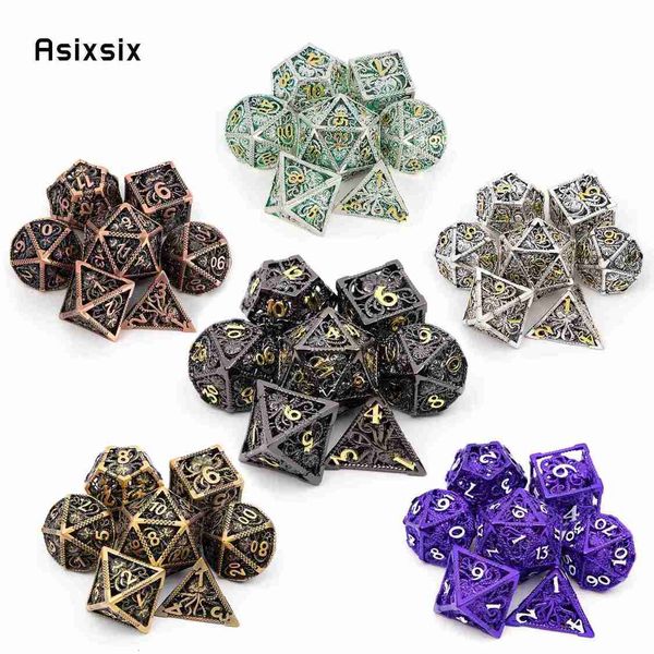 7 件各種顏色魷魚金屬骰子空心金屬多面骰子套裝適用於角色扮演 RPG 棋盤遊戲紙牌遊戲