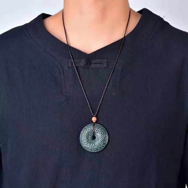 經認證天然和田玉吊墜圓環雕刻回文翡翠首飾男士佛教護身符玉石首飾