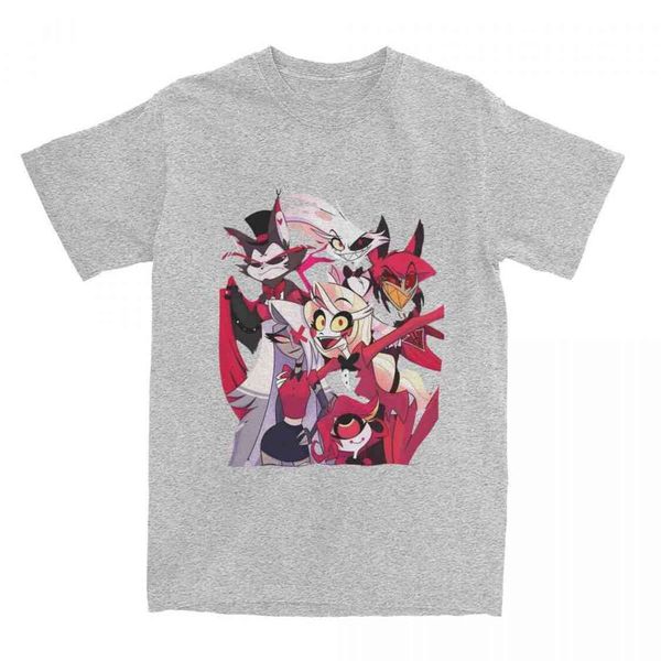 男款女 Hazbins 飯店 T 卹純棉衣服趣味短袖圓領 T 卹加大尺寸 T 卹