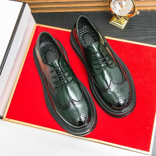 漆皮牛津禮服綠色時尚男士商務手工婚禮男士鞋設計師正式布洛克原創皮鞋