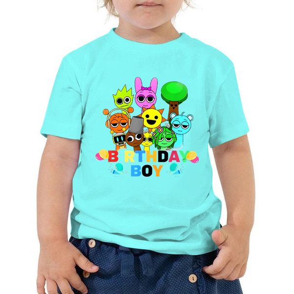 T 卹遊戲卡通 Sprunki 印花街頭服飾「生日男孩」休閒時尚圓領 T 卹兒童趣味 Sprunki 人物 T 卹