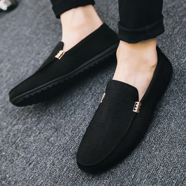 秋季男士商務帆布鞋戶外厚底軟底休閒樂福鞋輕便懶人時尚奢華駕車鞋