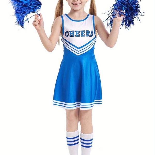 兒童啦啦隊服女童夏季運動無袖洋裝小童時尚啦啦隊服裙子酷