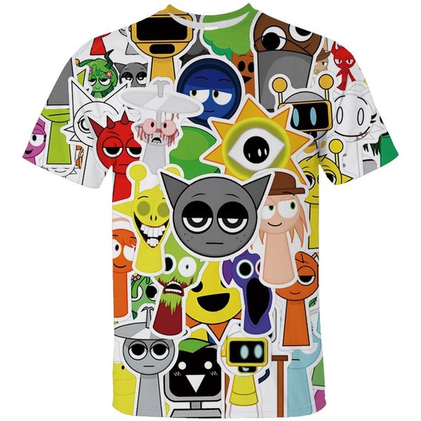 女孩男孩 Sprunki 3D 印花衣服兒童夏季圓領短袖 T 卹幼兒可愛卡通 T 卹兒童休閒 T 卹