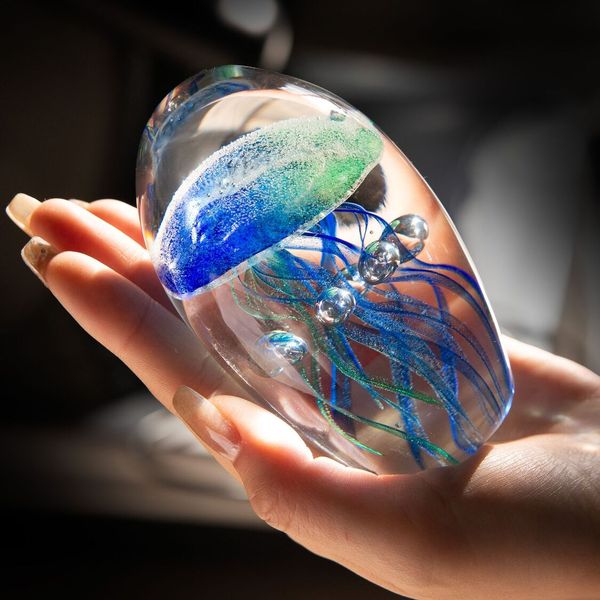 KANGMING 手工吹製玻璃水母雕像裝飾品,適用於家居裝飾、水族館和客廳 - 獨特的海洋動物系列