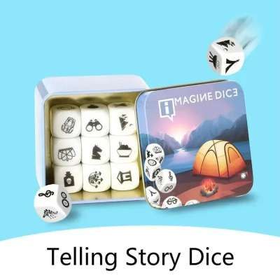全新說故事骰子學習玩具金屬盒/袋英語規則家庭/父母/派對趣味想像教育玩具兒童