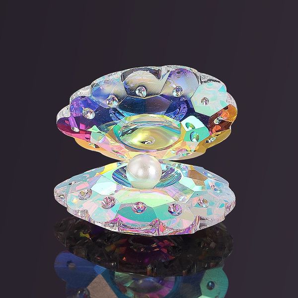 彩虹水晶小雕像珍珠牡蠣裝飾蛤蜊殼裝飾珠寶展示盒浪漫家居裝飾配件