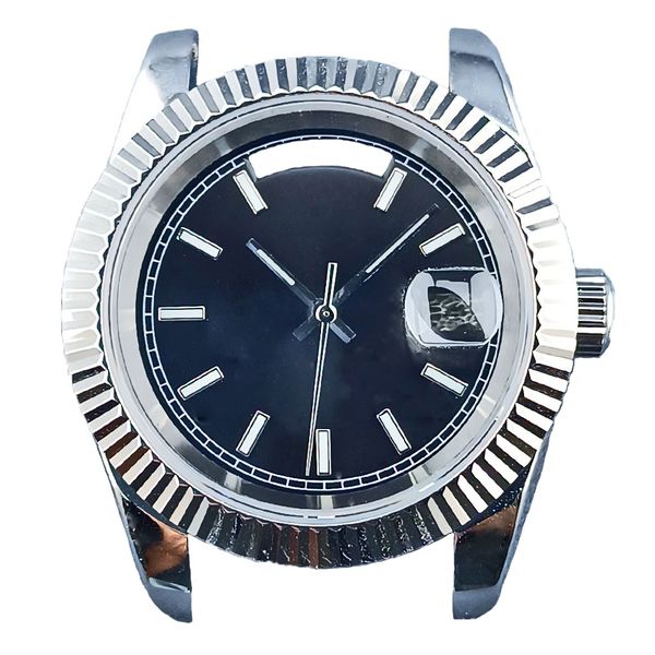 39 毫米銀色日曆錶殼防水No鏽鋼藍寶石玻璃適用於 Miyota 8285 機芯夜光錶盤手錶配件 A