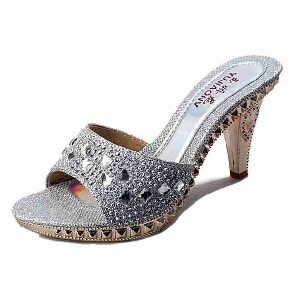 夏季女士涼鞋水鑽女鞋性感高跟鞋女式涼鞋金色銀色女士拖鞋高跟涼鞋性感