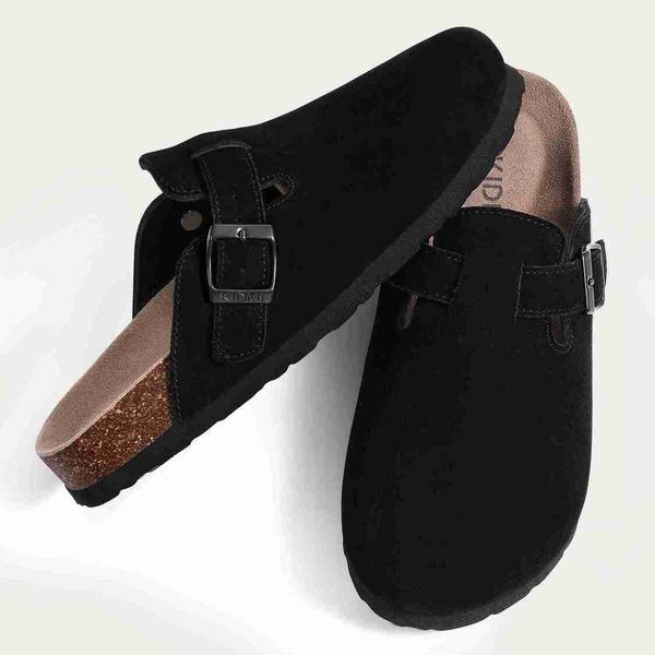 Shevalues 男士木屐拖鞋 牛皮絨面木屐 男士真皮穆勒鞋 男士時尚沙灘鞋 男士戶外經典軟木涼鞋