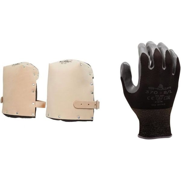 CLC 313 重型皮革護膝,雙層厚襯裡,棕褐色和 SHOWA Atlas 370B 丁腈掌心塗層手套,黑色,中號(