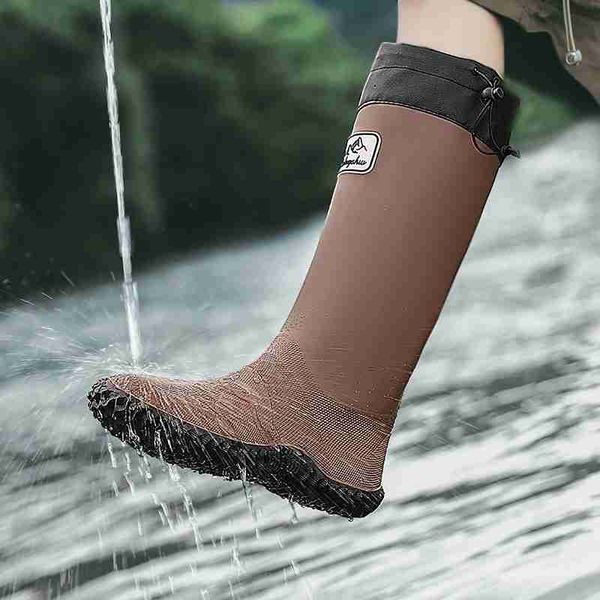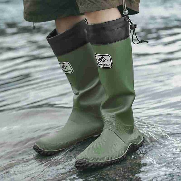 男士雨靴一腳蹬防水橡膠雨鞋,工作泥靴,耐用防滑花園靴,適用於農業園藝釣魚
