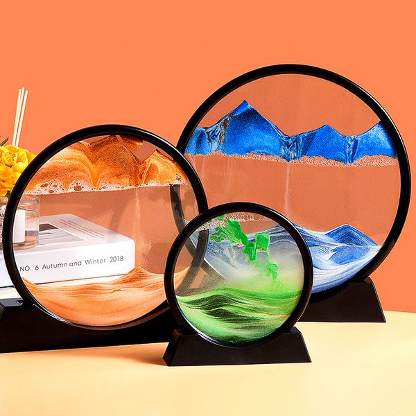 3D沙景移動沙畫藝術圓形玻璃深海沙漏流沙工藝流動沙畫辦公室家居裝飾禮品
