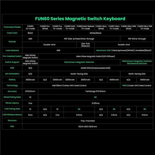 Model:MonsGeek FUN60/FUN60 PRO/FUN60 MAX/FUN60 ULTRA Magnetic Switch Mechanical Keyboard