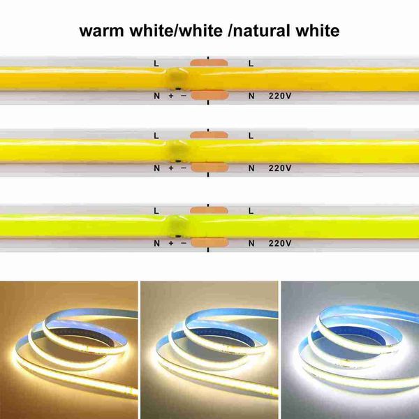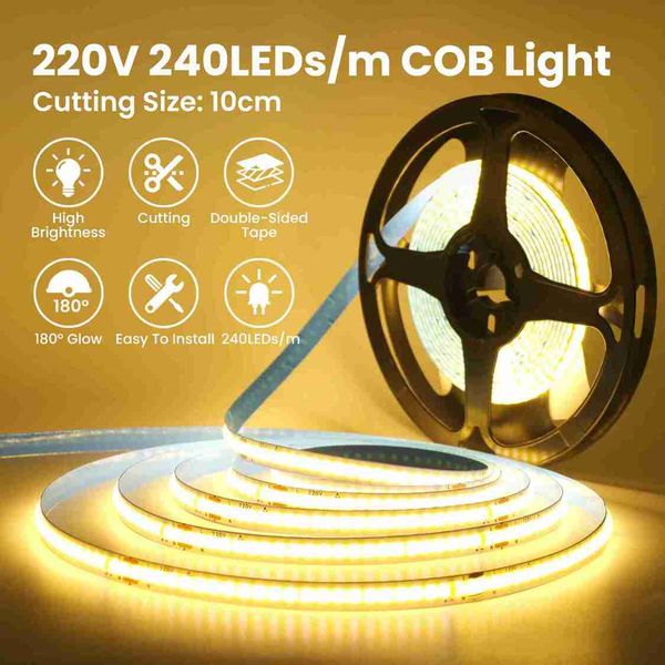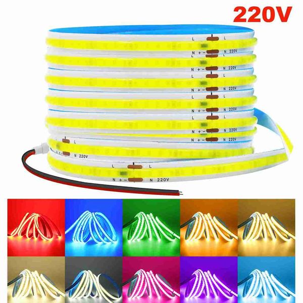 220V COB LED 燈帶無需驅動器 240LED/米 5米 10米 15米 20米 線性燈帶 紅/藍/綠/粉/白 適用於家居照明