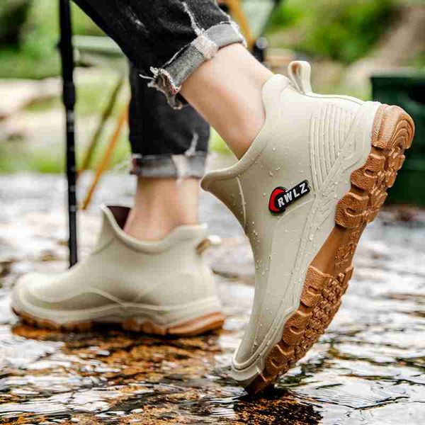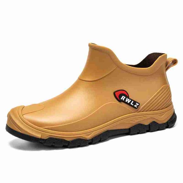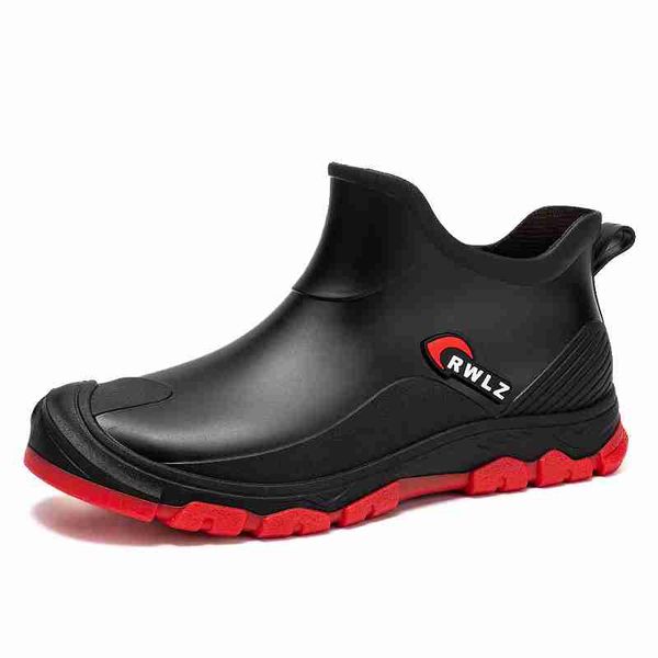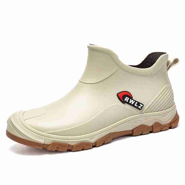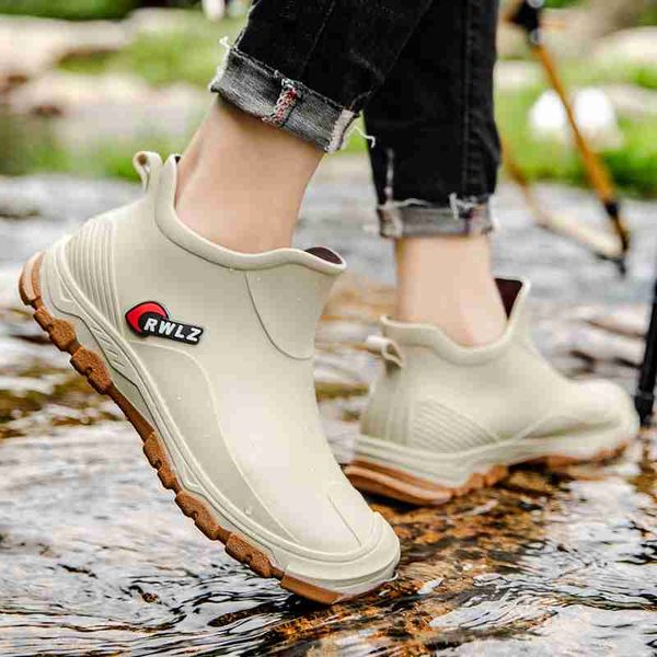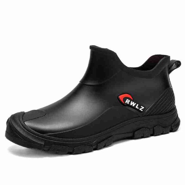 新款男士 PVC 雨靴潮流男士雨靴厚底戶外釣魚鞋一腳蹬保暖防水工作男士短靴純色鞋