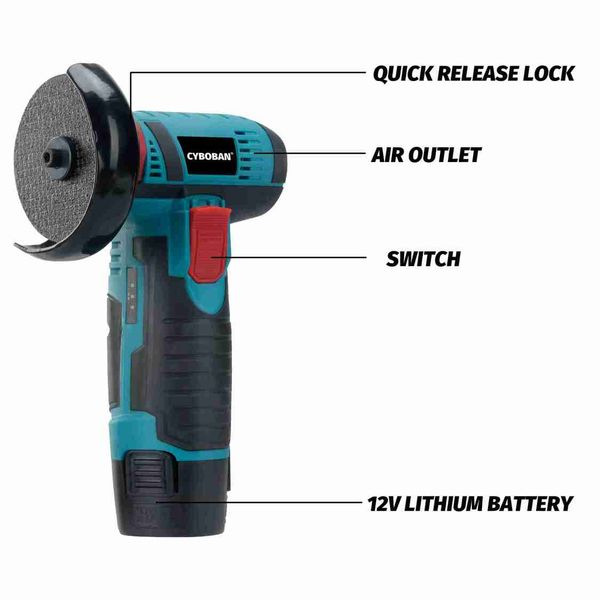 CYBOBAN 12v 迷你角磨機汽車維修刷馬達可充電切割鑽石無線電動工具拋光和研磨