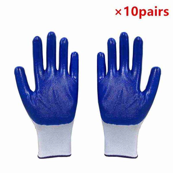 10雙安全工作手套藍色尼龍PU棉手套20雙工業防護車間工作手套
