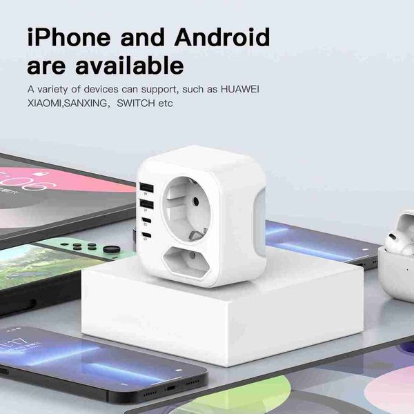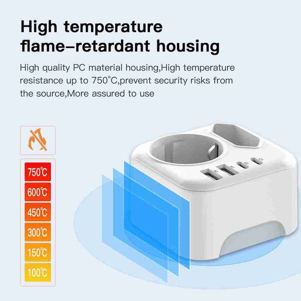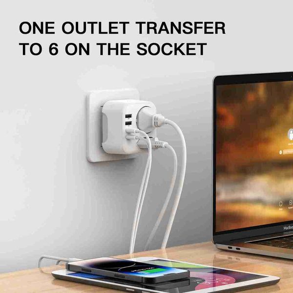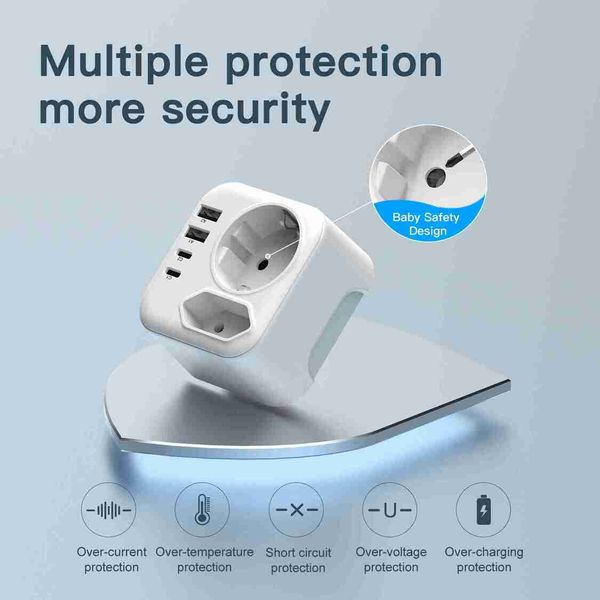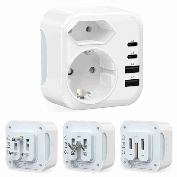 歐盟轉南非旅行電源轉接器,德標插頭,附2個USB接口和2個Type-C接口,可折疊轉接器插座,適用於南非和納米比亞