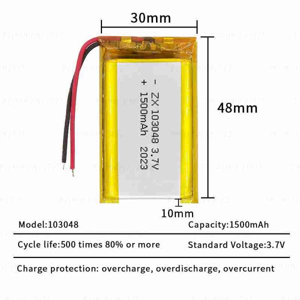 103048 鋰電池 3.7V 1500mAh 104050 聚合物充電電池 適用於美容儀霧化器行動電源筆記型電腦 DVD 電池