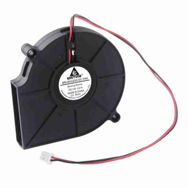 Gdstime 1 件 DC 12 伏特 2 線 7.5 cm無刷冷卻散熱器 12V 排氣鼓風機風扇 75 毫米 x 15 毫米