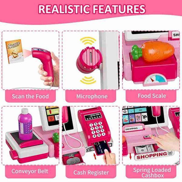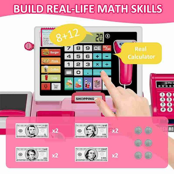 帶有真實計算器的購物收銀機玩具組、假裝商店、學習玩具、聖誕節/萬聖節/新年禮物