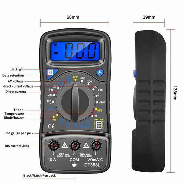 LEFAVOR DT858L 數位萬用電錶交流/直流電流表電壓歐姆錶帶熱電偶 LCD 背光便攜式