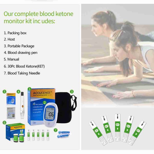 適用於生酮飲食的快速血酮儀套裝,含酮體監測器和試紙 30 片,含採血針,適用於生酮飲食
