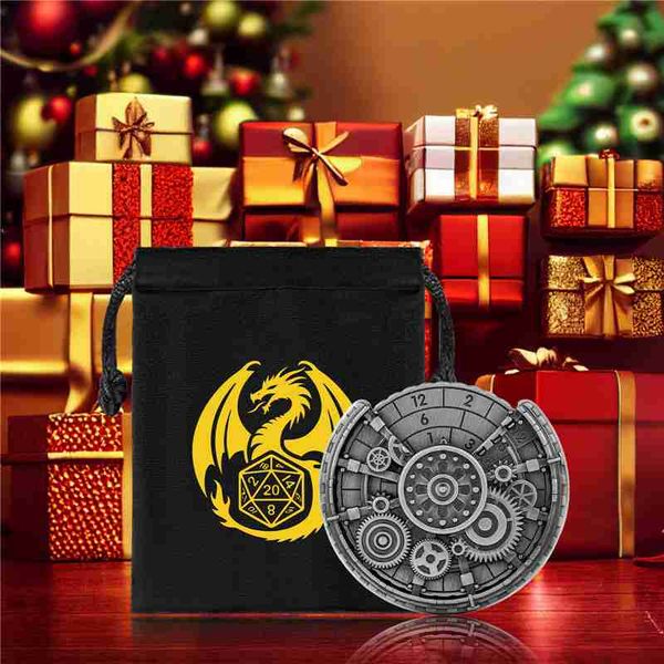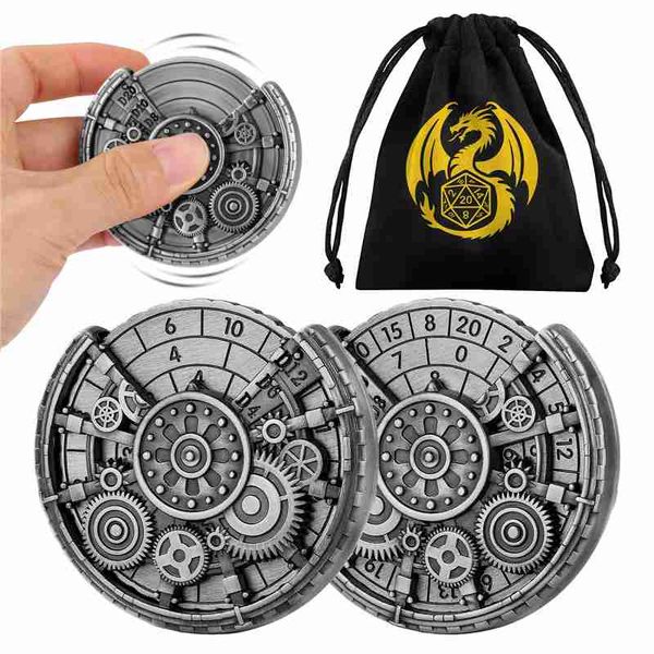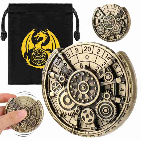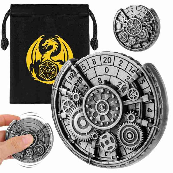 蒸氣龐克齒輪設計金屬骰子轉盤 7 合 1 骰子可旋轉滾輪適用於角色扮演遊戲配件婚禮禮品袋