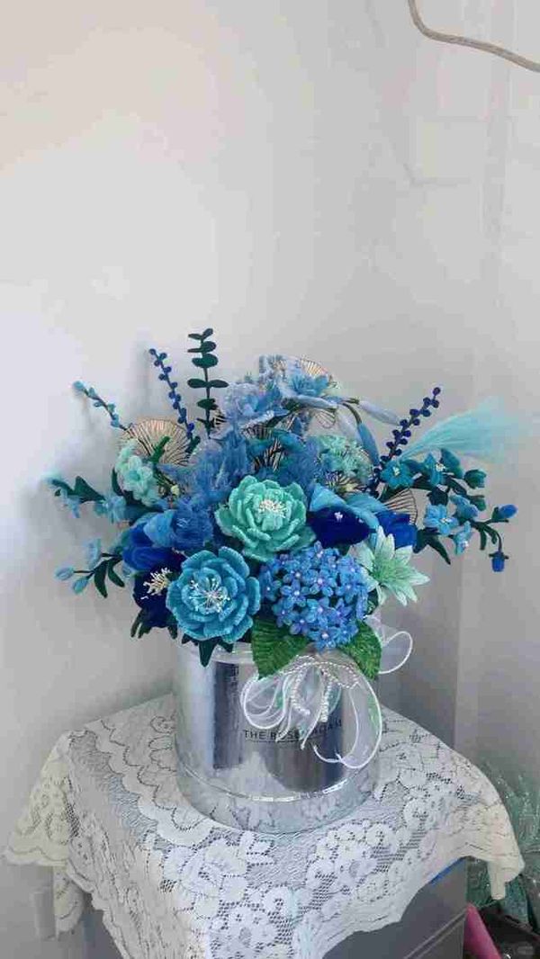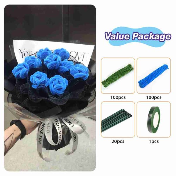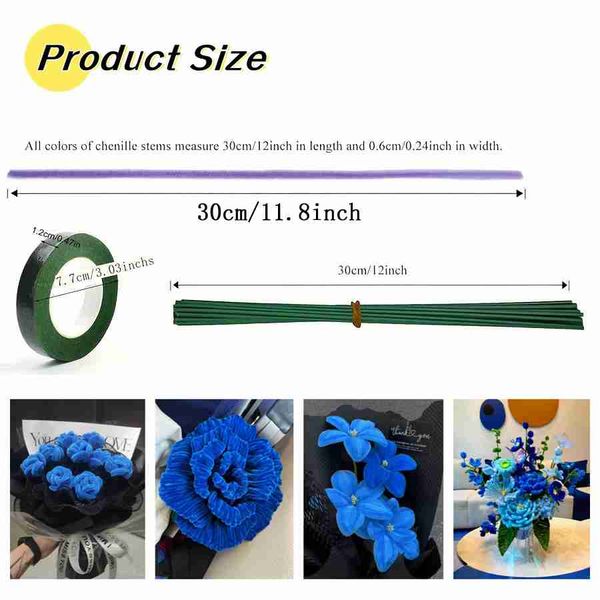 200 件管道清潔器工藝用品多色雪尼爾莖適用於藝術和工藝項目創意 DIY 藍色花朵