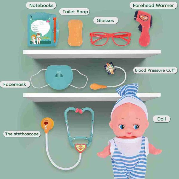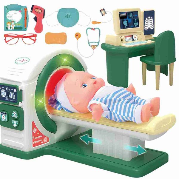 幼兒醫生套裝,逼真的兒童醫生玩具套裝,配有玩具聽診器、醫療工具和 CT 掃描儀,教育生日禮物