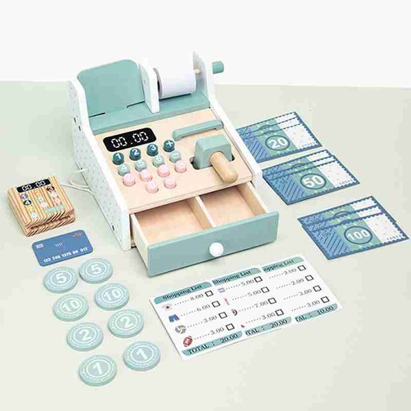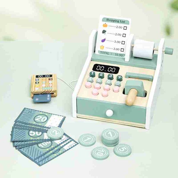 兒童木製模擬超市收銀台玩具收銀機兒童角色扮演玩具廚房玩具女孩過家