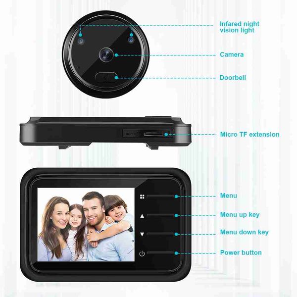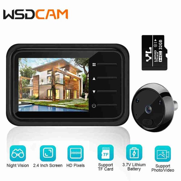 WSDCAM 2.4吋液晶門窺視孔攝影機視訊眼自動記錄數位門鏡夜視監視器戶外