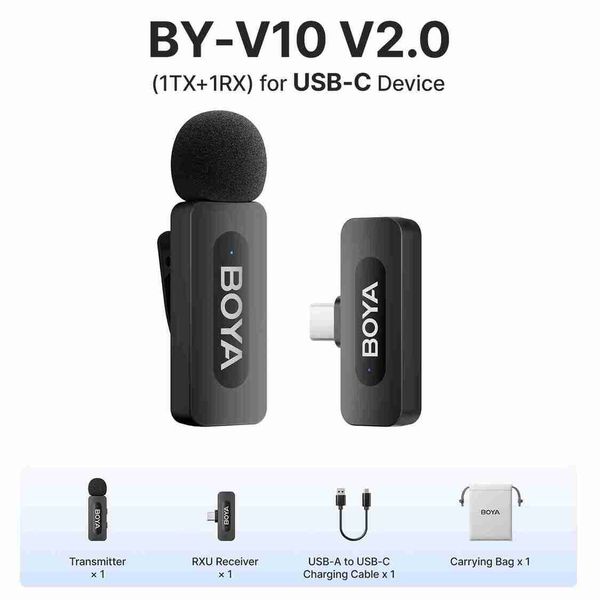 內建電池:Yes隔膜:小的指向性:全向溝通:無線的設定類型:多麥克風套件感應器:電容麥克風使用:專業工作室風格:領夾式麥克風品牌名稱:博雅認證:CE、FCC顏色:黑色的傳動類型:2.4Ghz無線麥克風領夾式麥克風頻率響應:20Hz-16kHz麥克風無線信噪比:80分貝麥克風無線靈敏度:-42分貝無線麥克風操作範圍:100米麥克風無線射頻輸出功率:10dBm麥克風無線充電埠:USB-C無線麥克風發射電池容量:95毫安時無線麥克風TX充電時間:約2小時無線麥克風發射電池壽命:約9小時TX麥克風電源:內建鋰離子電池RX麥克風電源:內建鋰離子電池領夾式麥克風TX重量:10.5克無線麥克風RX電池容量:130毫安培時領夾式麥克風:iPhone/iPad/iPhone15-16無線領夾式麥克風:Android/Type-c設備iPhone無線麥克風:用於直播遊戲錄影訪談Vlog博雅麥克風:智慧型手機無線麥克風BY-V10/V20/V30適用於:Android、Type-c智慧型手機BY-V1/V2/V3適用於:iPhone、iPad、Lightning設備BY-V35適用於:相機/數位單眼相機/3.5公釐設備BY-V3組合:Type-c/Lightning/iphone設備The Best-ONEThe Best