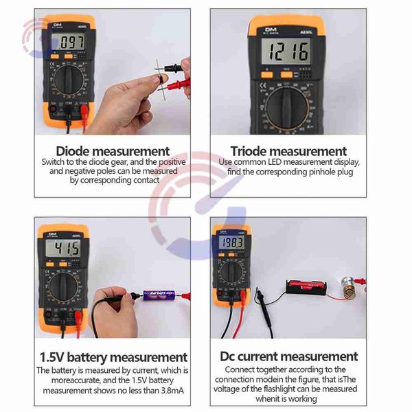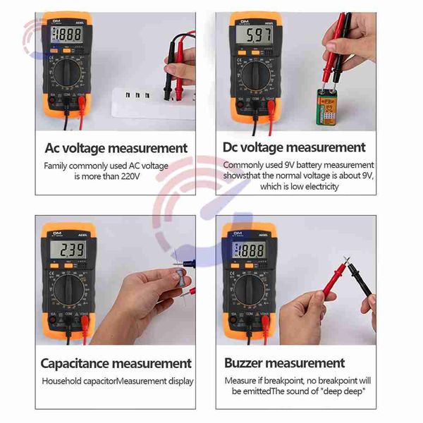 池:NONo工作模式:手動範圍測量電容範圍:1兆歐DIY用品:電力認證:CEOrigin:MainlandChinaModelNumber:A830LDigitalMultimeterBrandName:AideepenDCCurrent:100AACCurrent:600VDCVoltage:100ADisplayType:DigitalDisplayACVoltage:600VA830L數位萬用電錶,交流/直流600V電壓表,電壓電流二極體和電阻頻率溫度測試儀,家用工具,特點:1.這款儀表是一款手持式3.5英寸數位萬用表,用於測量交流/直流電壓和交流/直流電流、電阻、二極管、電晶體、頻率、溫度和電池通斷性測試,由電池供電。2.適合學校、工廠、家庭和業餘無線電愛好者使用。3.小巧緊湊的設計4.出色的電子測量儀器5.顯示器背景燈可選規格:型號:A830L交流電壓:AC500V電池:6F22(9v)材質:ABS淨重:103g尺寸:69.4mm*34.1mm*144.7mm/2.73吋*1.34吋*5.69吋類型:CAT萬用表:手持式安全型:安全型:II測量功能:電阻,直流電流,交流電流,交流電壓,直流電壓自動量程:是開/關蜂鳴測試:是二極體測試:是資料保留:是自動關機:NO直流電壓範圍:600V交流電壓範圍:600V直流電流範圍:100A交流電流範圍:100A電容範圍:1MΩ最大顯示:1999標準配件:筆,說明書外形尺寸:135×六十七×33mm電池類型:6F22型9V電池淨重:0.15Kg顏色:藍白(NO含電池)、黃藍(NO含藍電池)、NO含藍電池(NO含藍電池)、NO含藍電池(NO含藍電池)、黃藍電池(NO含藍電池)、NO含藍電池(NO含藍電池)、黃藍電池(NO含藍電池)、NO含藍電池(NO含藍電池)、NO含藍電池(NO含藍電池)、黃藍電池(NO含藍電池)、NO含藍電池(NO含藍電池)、黃藍電池(NO含藍電池)、黃藍電池(NO含白電池)、NO含藍電池)(NO含藍電池)、黃藍電池(NO含藍電池)、黃藍電池(NO含藍電池)(NO含藍電池))、黃藍(電池)、黃藍電池(NO含藍電池)、”包裝包括:1xA830LMINI袖珍手持式數位萬用電表2x探頭1x使用手冊The Best-ONEThe Best