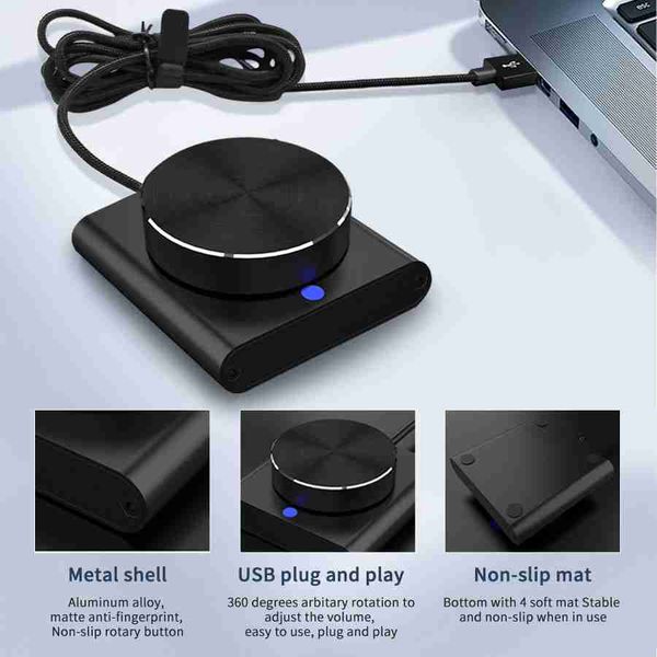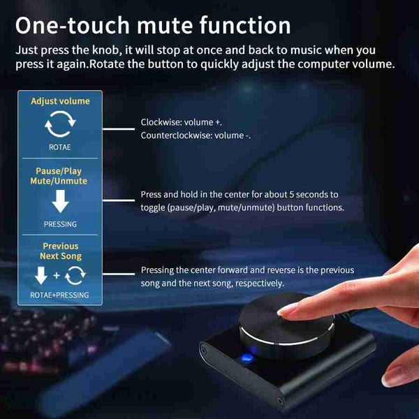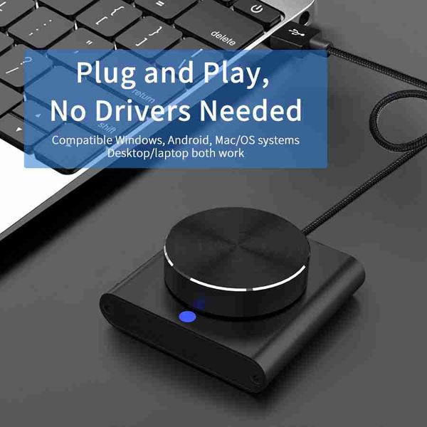 USB 音量控制旋鈕多媒體控制器旋鈕,附一鍵靜音/暫停功能,適用於 PC,支援 Windows/Mac/IOS/Android/Linux