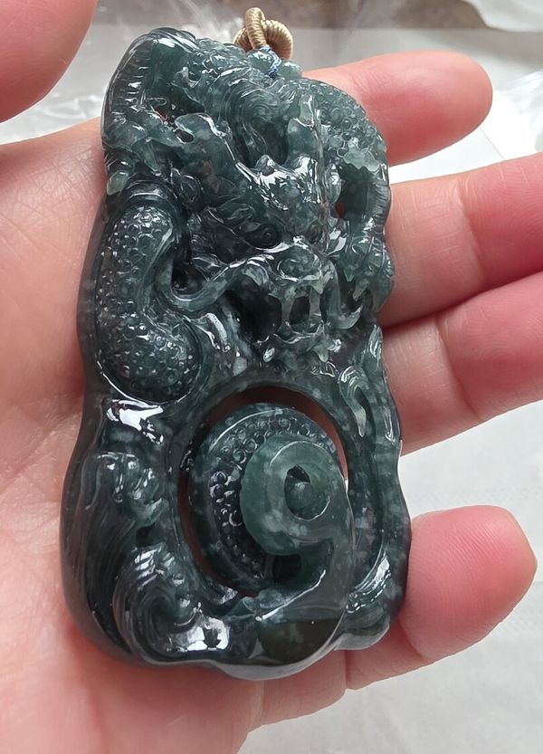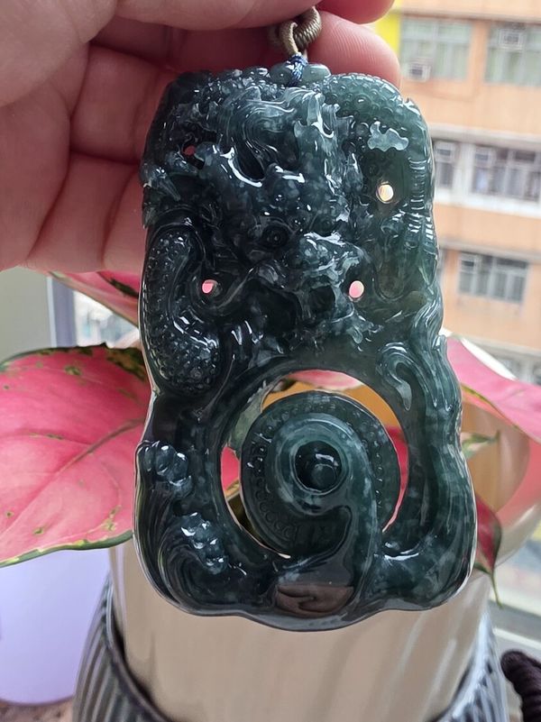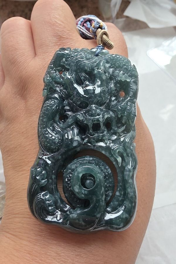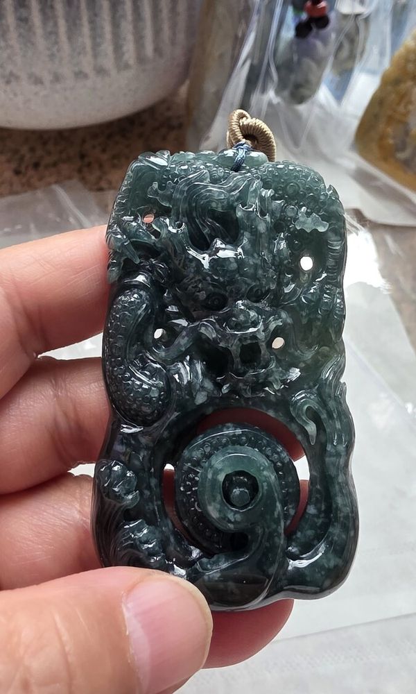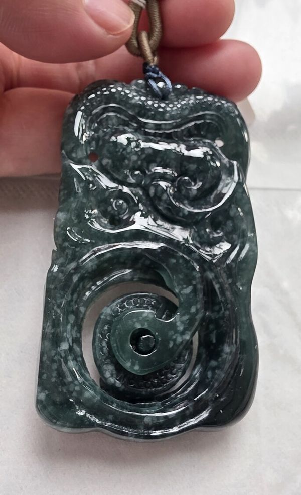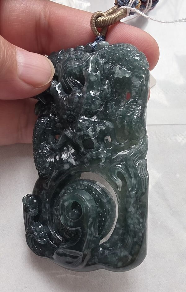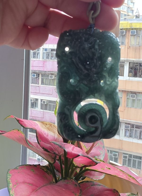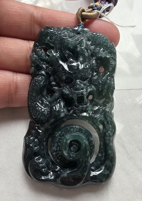 貨品: 天然翡翠A貨青石藍運轉乾坤龍牌(綁繩)吊飾