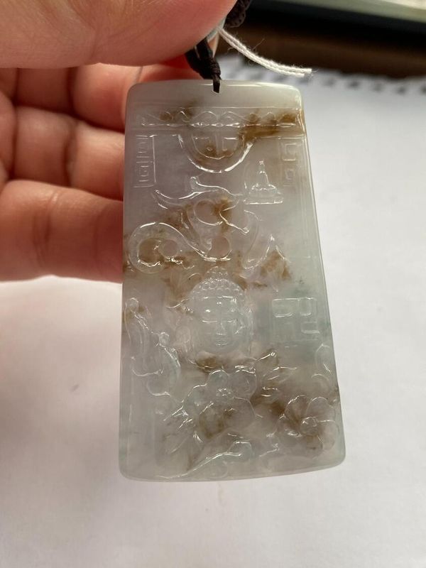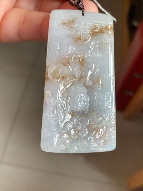 貨品: 天然翡翠A貨冰膠淡紫撒金阿彌陀佛(綁繩)項鍊