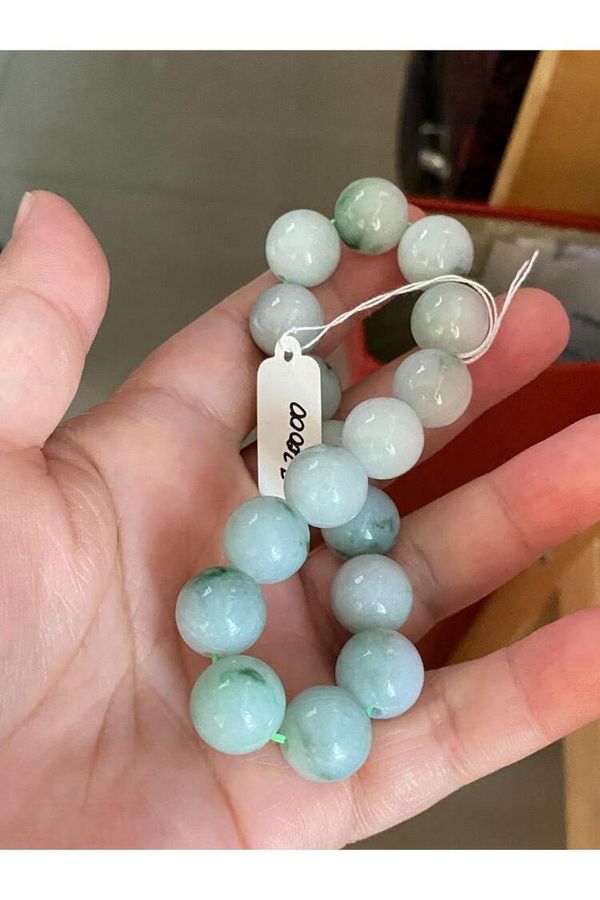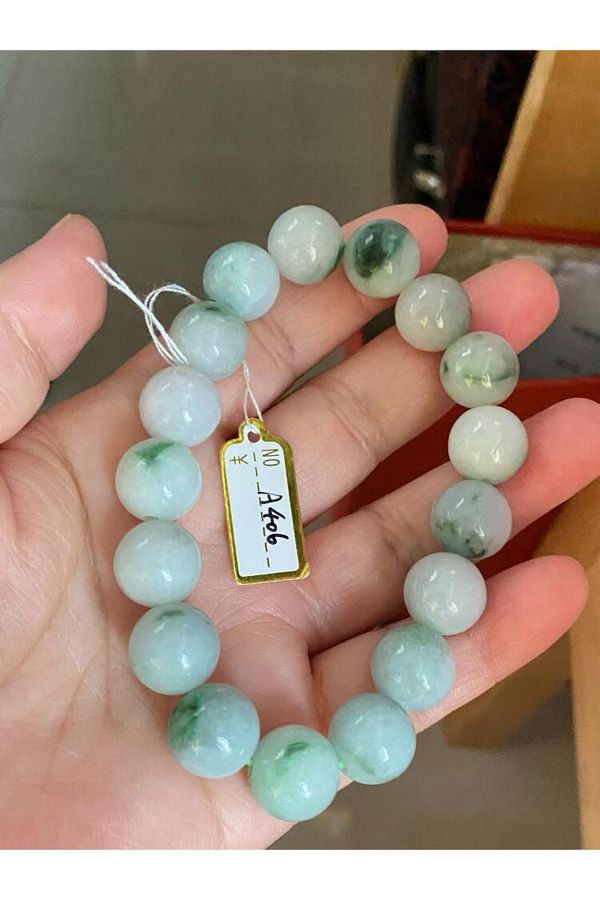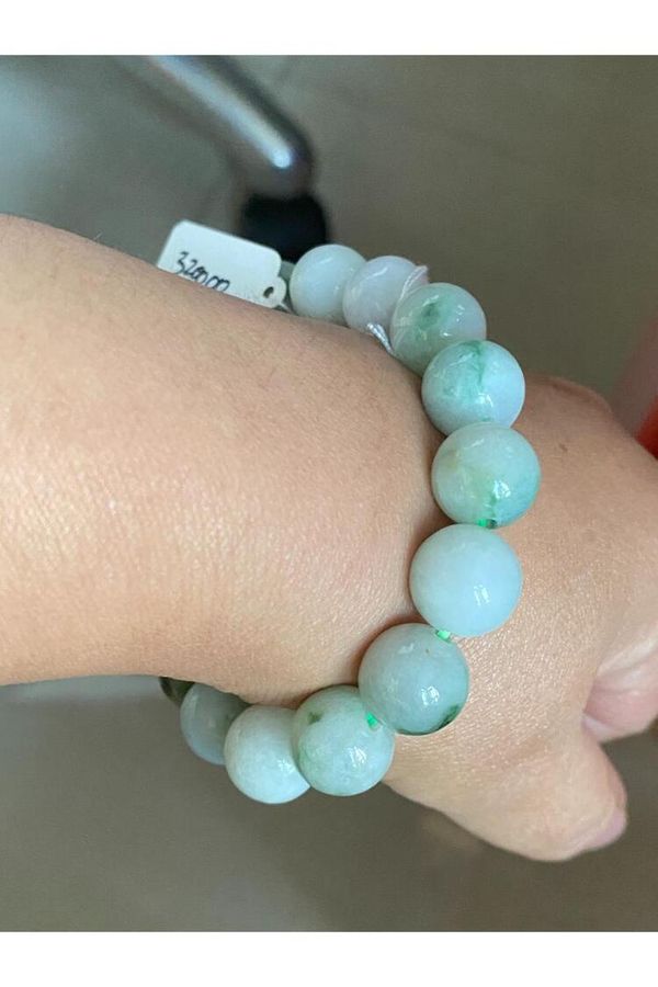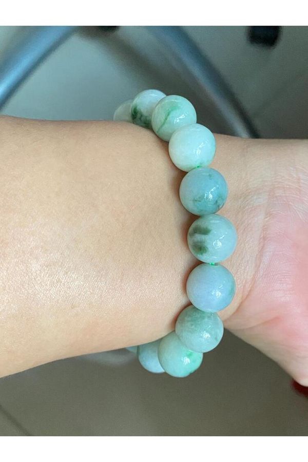 貨品: 天然翡翠A貨淺綠飄花圓珠手串(12.3#)