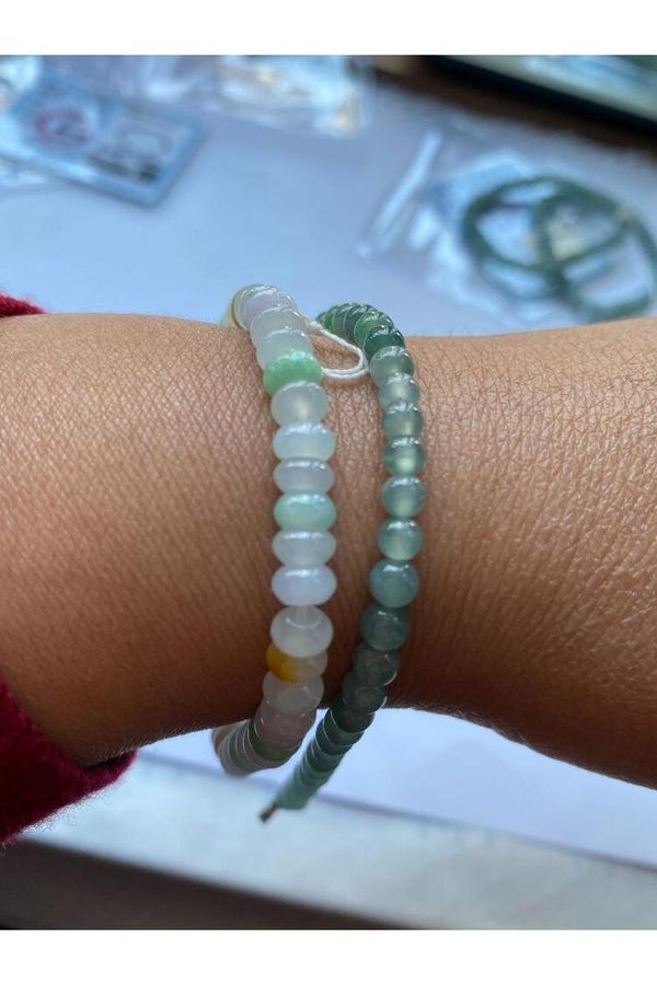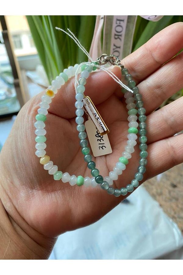 呎吋: A5-算盤珠白間綠; A460-透繩綠