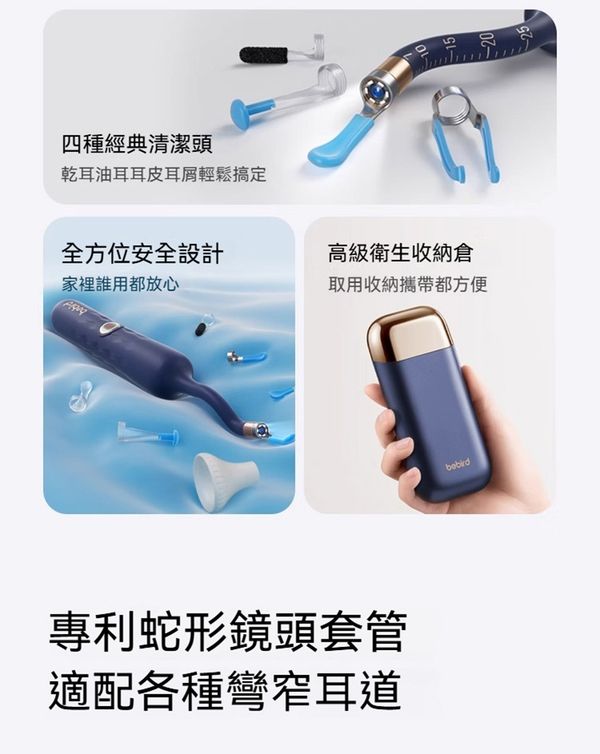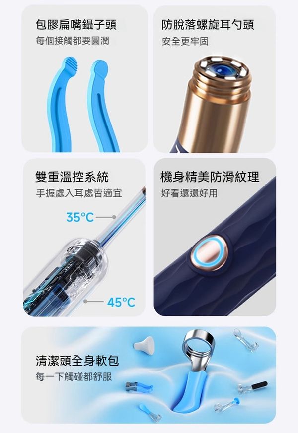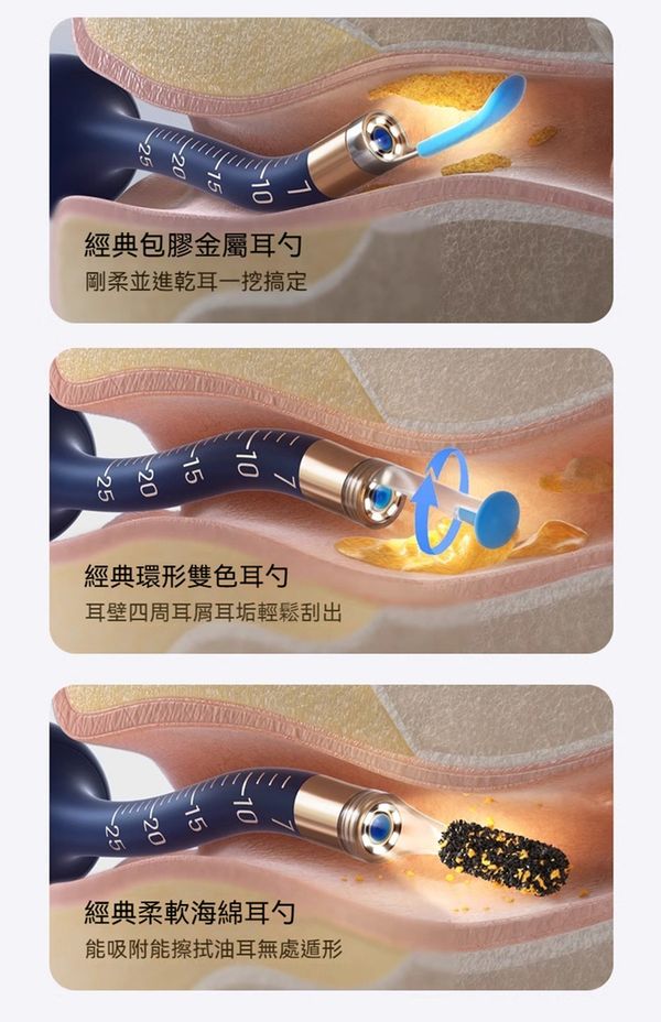 👂🏻耳垢去除工具: 四種不同類型的耳勺,適用於乾濕耳垢,滿足各個年齡段家庭成員需求。