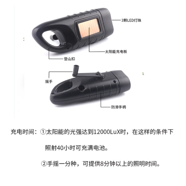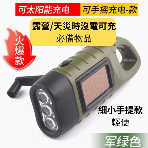 手搖手捏自發電手電筒 太陽能充電三燈 迷你戶外便攜