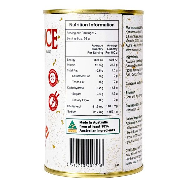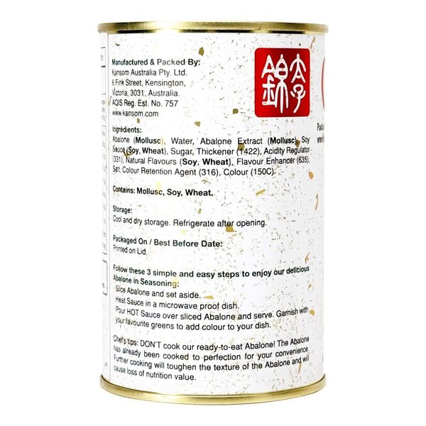 以傳統濃郁燒汁烹調澳洲野生黑邊鮑魚,完美搭配並增強了鮑魚的鮮味。 只需將鮑魚取出切片,將醬汁加熱後倒在鮑魚片上或可配搭喜歡的蔬菜,即可享受到燒汁鮑魚的美味。本產品即開即食,無需額外烹飪。 額外烹飪會影響風味及導致口感和營養流失。