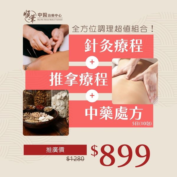順華中醫針灸、中醫推拿、5天中藥處方組合療程1次