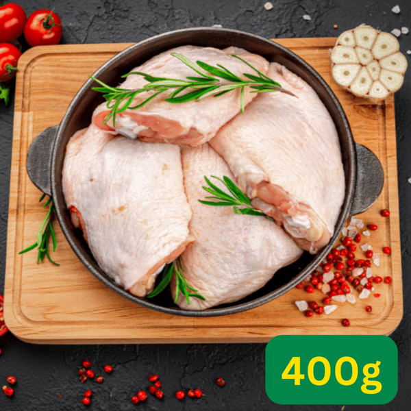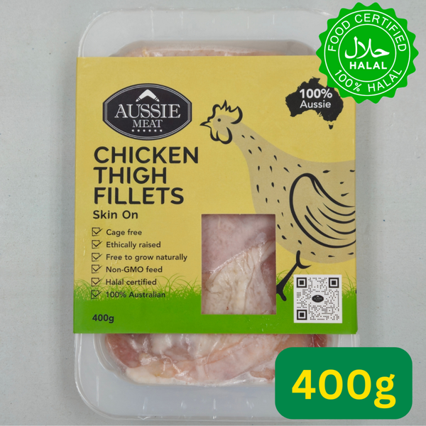 Aussie Meat Australian Hormone Free Chicken Thigh Fillets (Skin-On & Boneless) are from NSW, Australia. A chicken for family dinners and secret family recipes. Raised the way chickens should be raised. Free-ranging in large fields and at night, flocking in roomy sheds. They are fed on clean grain and fresh water, with no hormones and nothing artificial. The way nature, and you, would want.