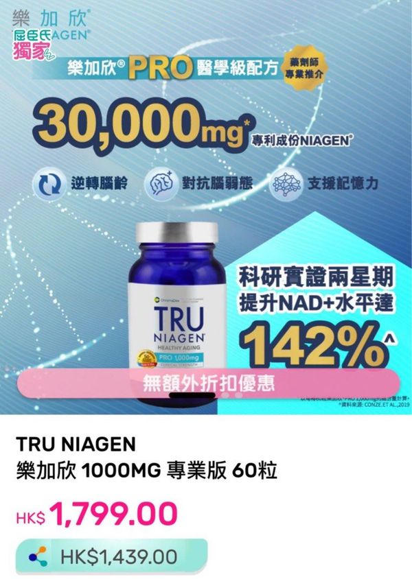 樂加欣 1000MG 專業版 60粒 PRO tru niagen
